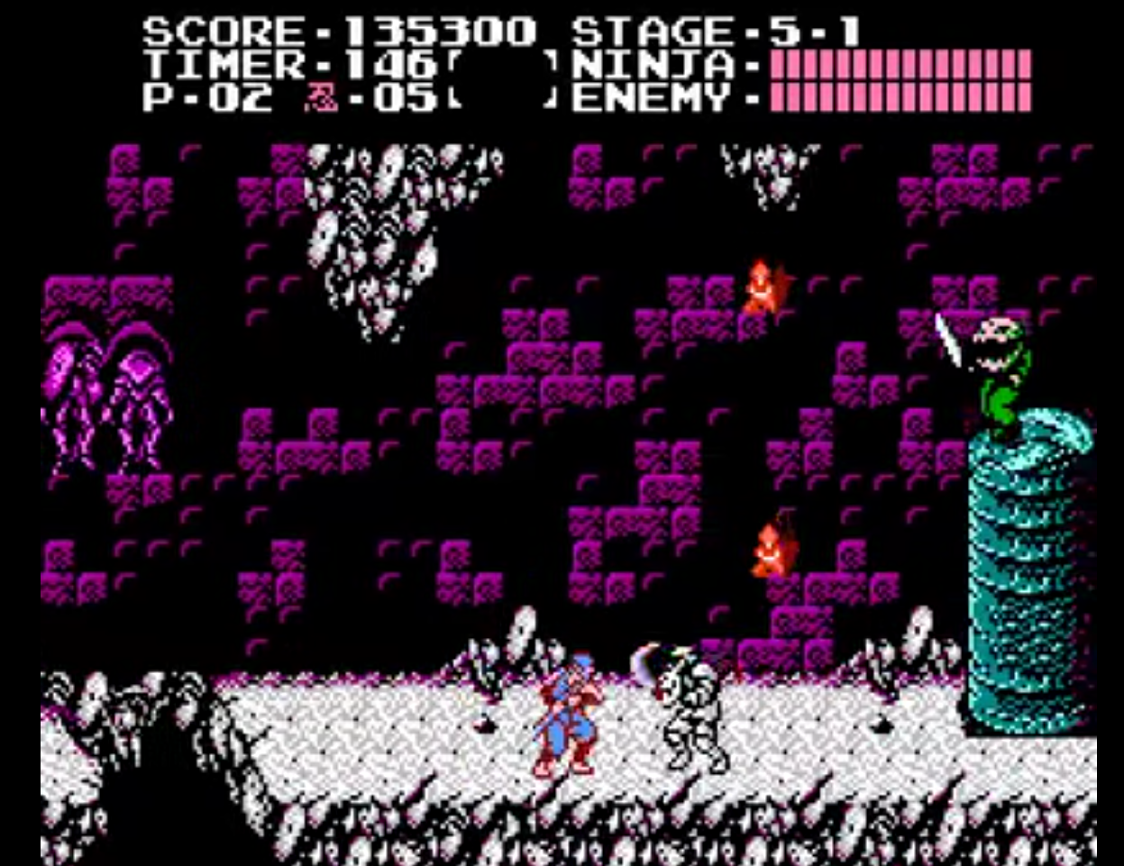 ngai-nes February 15, 2017 1247 × 961 Ninja Gaiden (Ryūkenden) (1992 PC Engine) vs. The NES Version NES Stage 5-1 enemy on top of pillar
